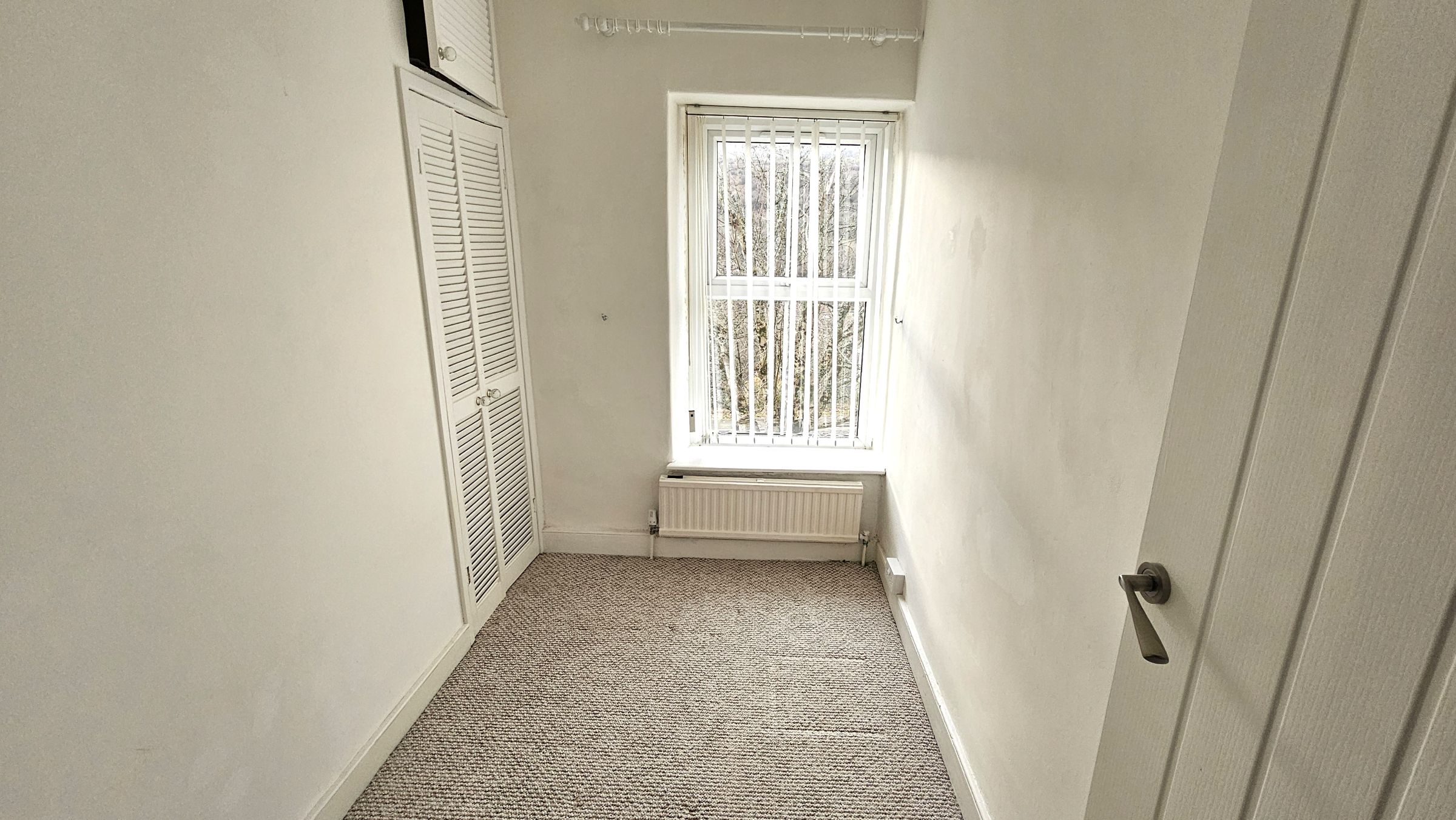 Smooth plastered ceiling and walls, carpet, radiator, UPVC double glazed window to front