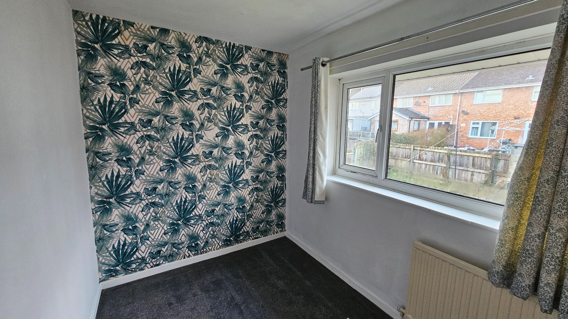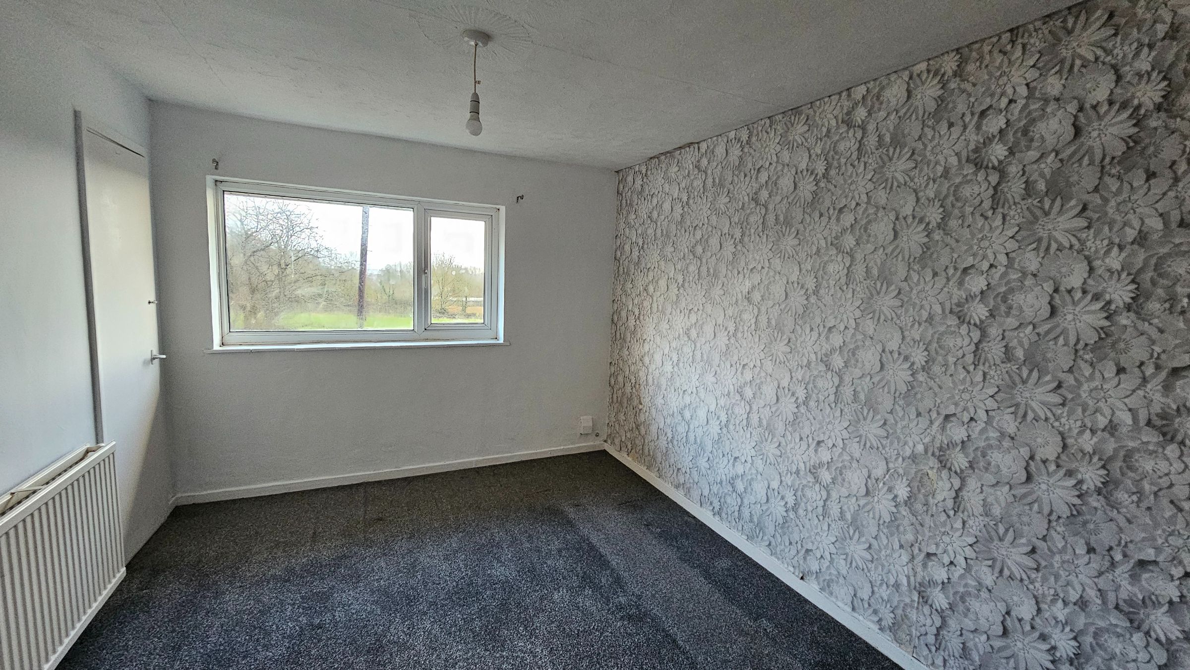 Smooth plastered, part papered walls, carpet, radiator, double glazed window to rear.